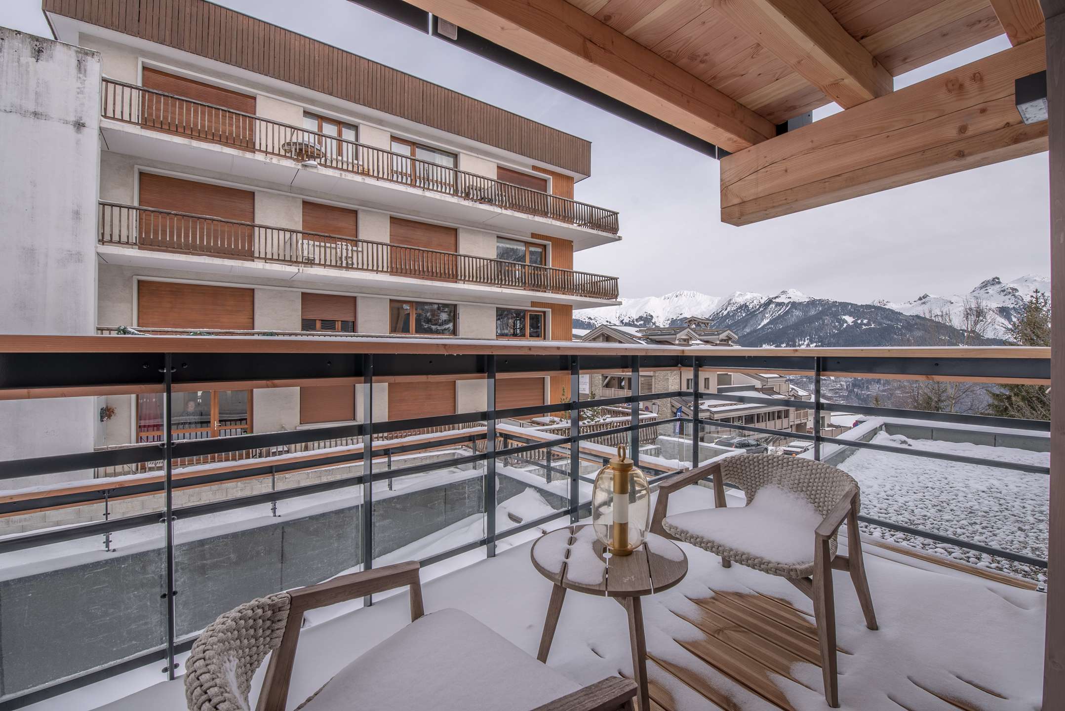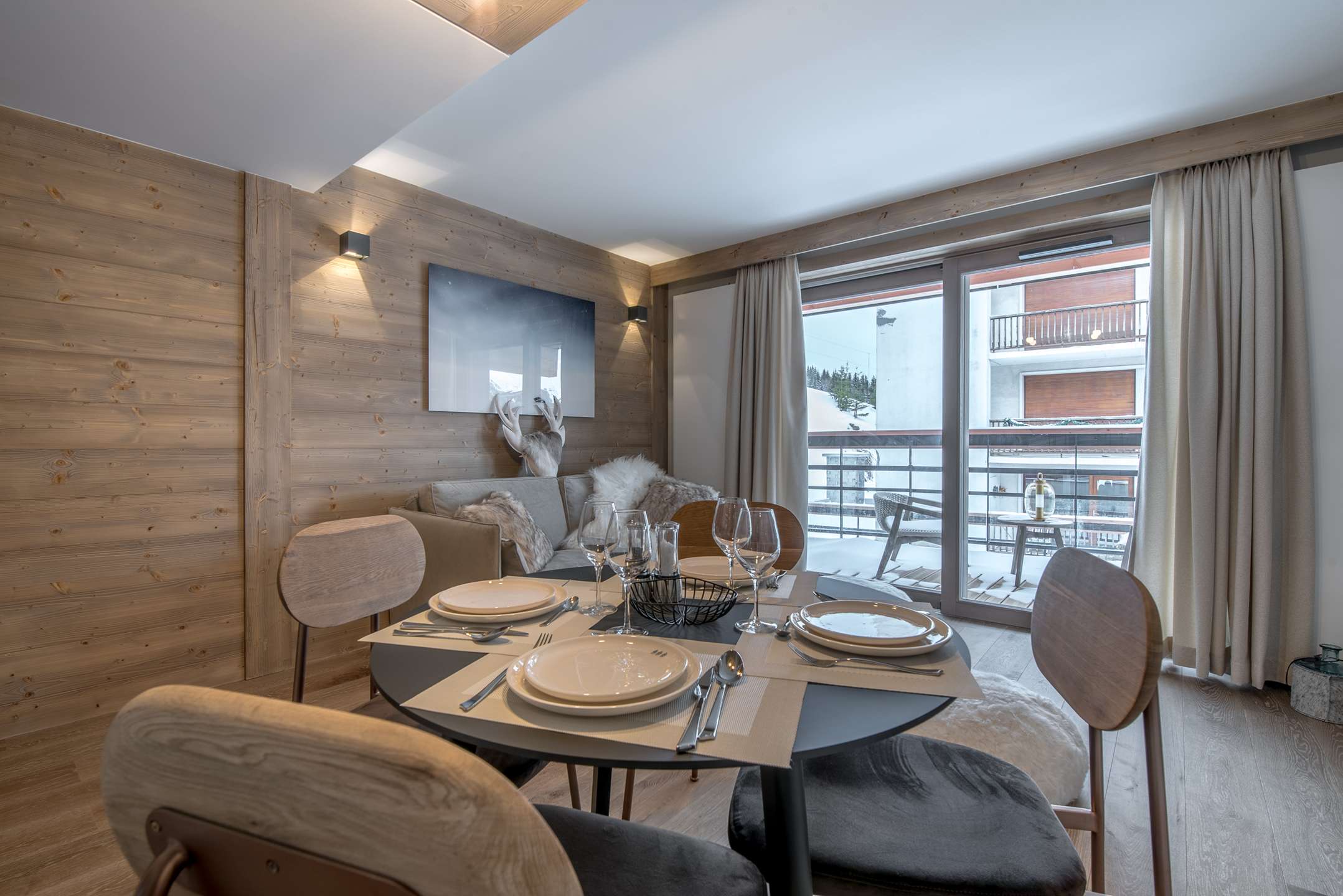 Kuscheliges Apartment, ideal gelegen im Zentrum des Resorts und nur einen Steinwurf von den Pisten des Dorfes Courchevel entfernt: Lift „Les Grangettes“. Nordwestbalkon.